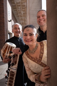 Begleitet wird sie von Sebastian Dreyer an der Sitar und Ravi Srinivasan an der Tabla und mit Gesang.
